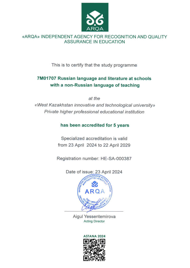 List of concluded agreements of the West Kazakhstan Innovative and Technological University on cooperation in the field of science and education
