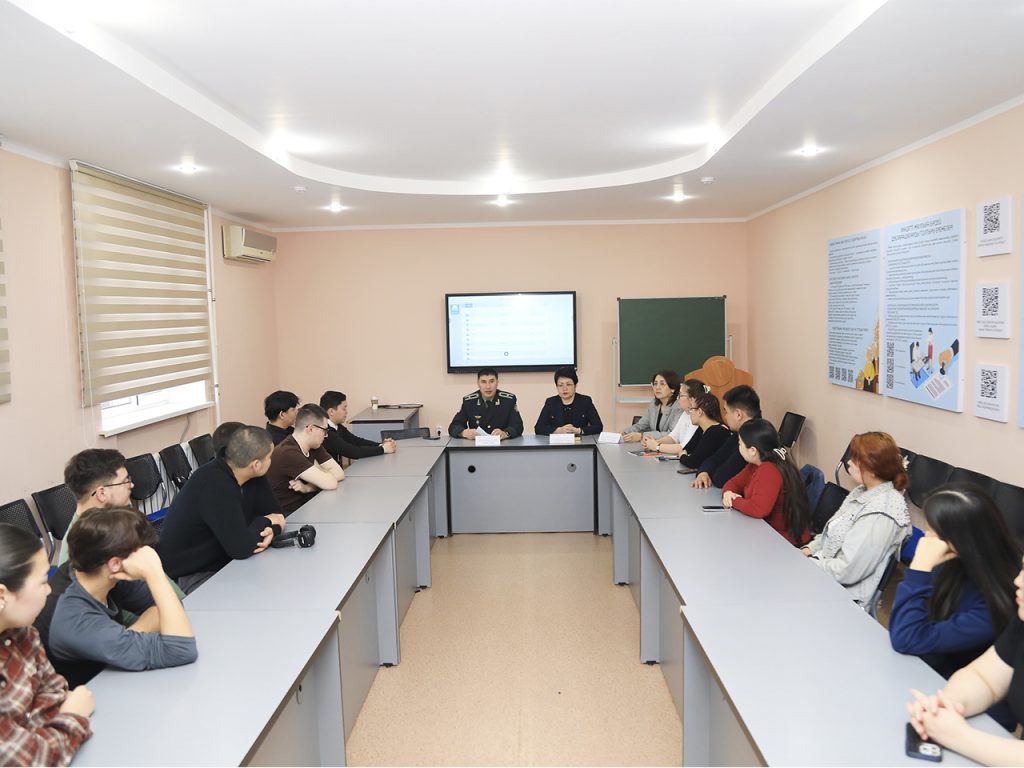 On March 31, 2026, the Department of Finance and Economics organized a meeting with representatives of the Department of Economic Investigations of the Financial Monitoring Agency of the West Kazakhstan Region. The meeting was organized as part of the implementation of the “Adal Azamat” State Program for 2025-2027 in the relevant areas outlined in the Roadmap for Improving the Professional and Personal Qualities of Civil Servants. During the meeting, students were briefed on economic security measures, the importance of digital security, and new methods of protecting against financial fraud.