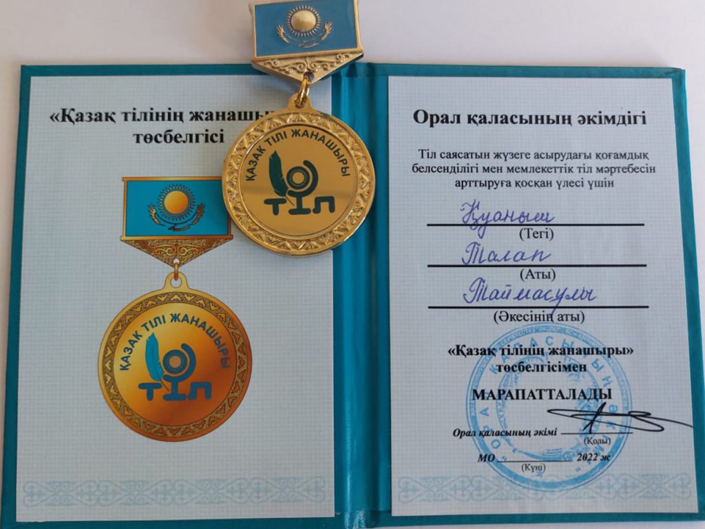 The certificate of honor of the akim of the city of Uralsk was awarded to the professor of the department of philology, culture and teaching methods of the West Kazakhstan Innovative and Technological University, Doctor of Philology Sabyr Murat Bokenbaiuly, and the senior lecturer of the department Kuanysh Talap Taimasuly was awarded the sign “Til zhanashyry” on behalf of the akim of Uralsk.