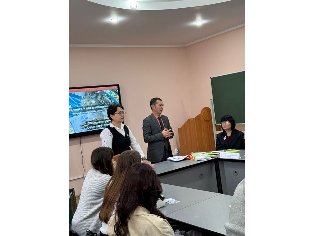 The event dedicated to the National Currency Day of the Republic of Kazakhstan was held at the Finance and Economics Department on November 13, 2024. It was attended by the faculty of the Finance and Economics Department, students of the educational programs Finance, Accounting and Auditing, Economics, Governmental and Local Management, Management, magistrands, head of the Management System Department Abdrakhmanova A.E., lecturer Takesova A.K. and students of the third year of Accounting and Auditing of the Higher Engineering and Technological College. The welcoming speech was made by the deputy head of the department Salimbaeva Sh.D., who noted that the holiday symbolizes the independence and economic stability of the country. As part of the event, a business game “Market” was held, organized by the head of the department, Candidate of Economics, associate professor Kurmanova G.K. and Master of Economics Togasheva D.S. The purpose of the business game is to activate the potential of students in the field of classical entrepreneurship. The students – future graduates, were satisfied with the organization and conduct of the business game and showed interest in the educational programs of higher education implemented at the department.
