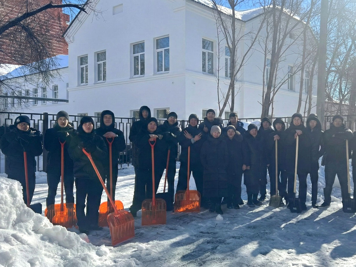 The Department of Energy, Automation and Computer Engineering of the Institute of Industry Technologies at West Kazakhstan Innovation and Technological University organized snow removal works on the territory of the academic building within the framework of the republican campaign “Taza Kazakhstan.”