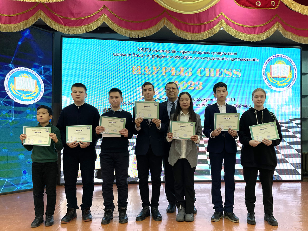 On the 4th of March 2023 the Department of General Education Disciplines of Engineering and Humanitarian Faculty at WKITU organized and conducted the chess tournament “Nauryz Chess-2023”. The tournament was attended by schoolchildren of 8-11 grades of secondary schools of Uralsk city, NISH, FMS, school-lyceum, Michurinskaya and Trekinskaya secondary school. This event purpose is career guidance work, acquaintance with the Engineering and Humanitarian Faculty. Among young chess players are the city and regional champions. According to the results of the chess tournament, the jury allocated the following places and nominations: