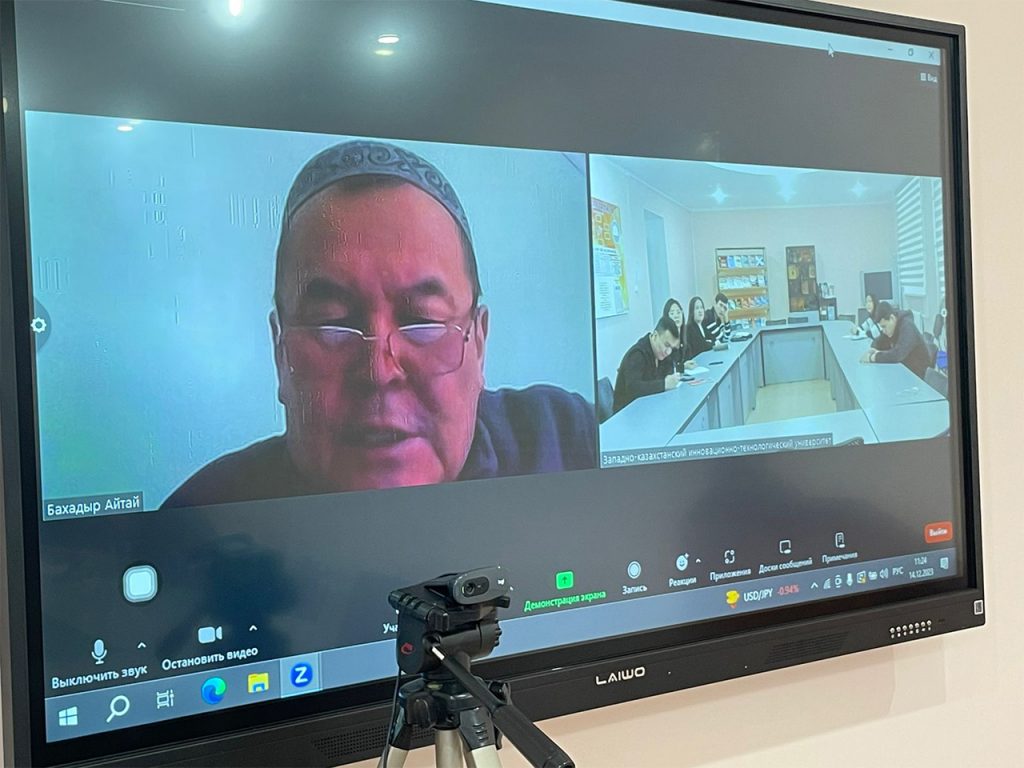 In the first half of the 2023-2024 academic year at the West Kazakhstan Innovative and Technological University, as part of the internal academic mobility program from September 18 to December 15, 2023, senior lecturer, Candidate of History at the Uzbekali Zhanibekov South Kazakhstan Pedagogical University Aitai Bakhadir Satybaldyuly delivered a lecture for students of the educational program “6B01601 – History teacher training” in the discipline “Methodology of Teaching History”. As a result of the academic mobility program, the lecturer was awarded a certificate from the rector of the West Kazakhstan Innovative and Technological University associate professor Shakeshev B.T. Based on the concluded cooperation agreement with the Uzbekali Zhanibekov South Kazakhstan Pedagogical University, further work is planning to implement joint scientific projects, to organize international conferences and to realize an academic mobility program.