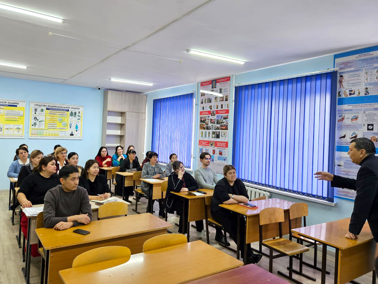 The meeting was moderated by N.M. Kadyrgaliyev, Candidate of Historical Sciences, Professor of the Department of General Educational Disciplines, and Honored Worker of Education of the Republic of Kazakhstan, who emphasized the scale and significance of the constitutional reform.