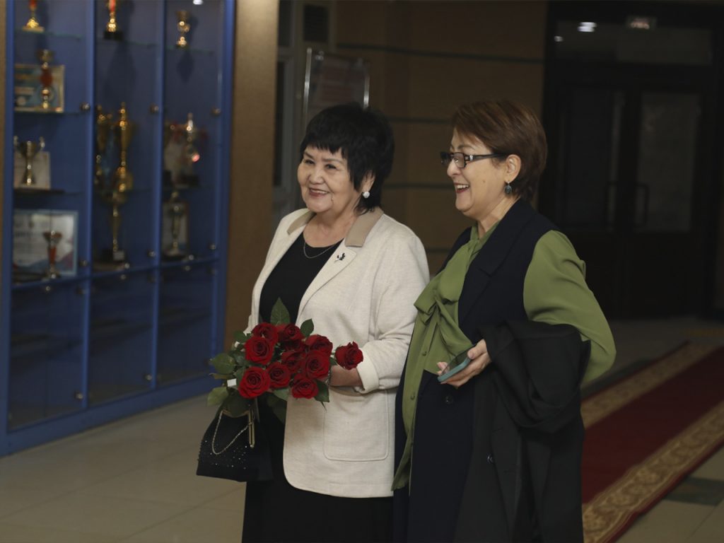 At the end of the evening, the vice-rector for educational work of WKITU Abekeshev Ayanbek Imanbaevich expressed gratitude to the guest on behalf of the university administration and presented a congratulatory address in honor of the anniversary with a memorable gift and a bouquet.