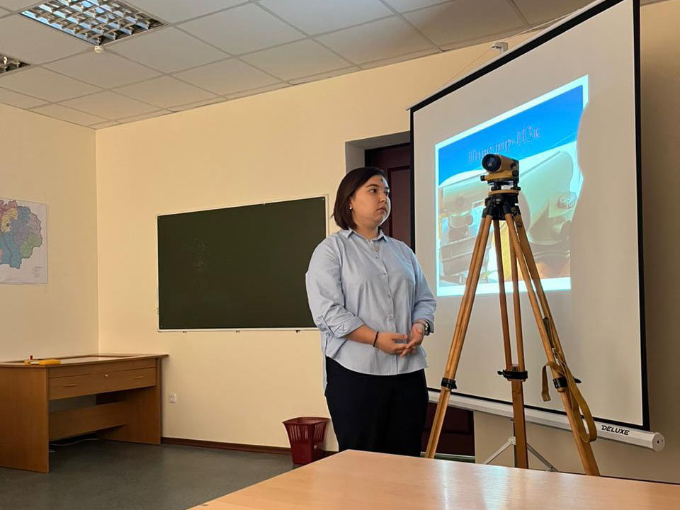 On October 28 of this year, an open lesson on the discipline “Geodesy” on the topic “Geodetic instruments and tools, calculation of the list of coordinates of points” was planned and held at the Department of Architecture and Construction. Students of the educational program 6B07301 “Architecture”, group Arch-22 participated. During the practical lesson, the students showed the skills of working on a modern computer program “Calculating the coordinates of points”, after receiving the initial materials, the students began to determine the area of the plots, as well as told the structure and concept of geodetic instruments, such as theodolite (T30), level (H3k), measuring tape.