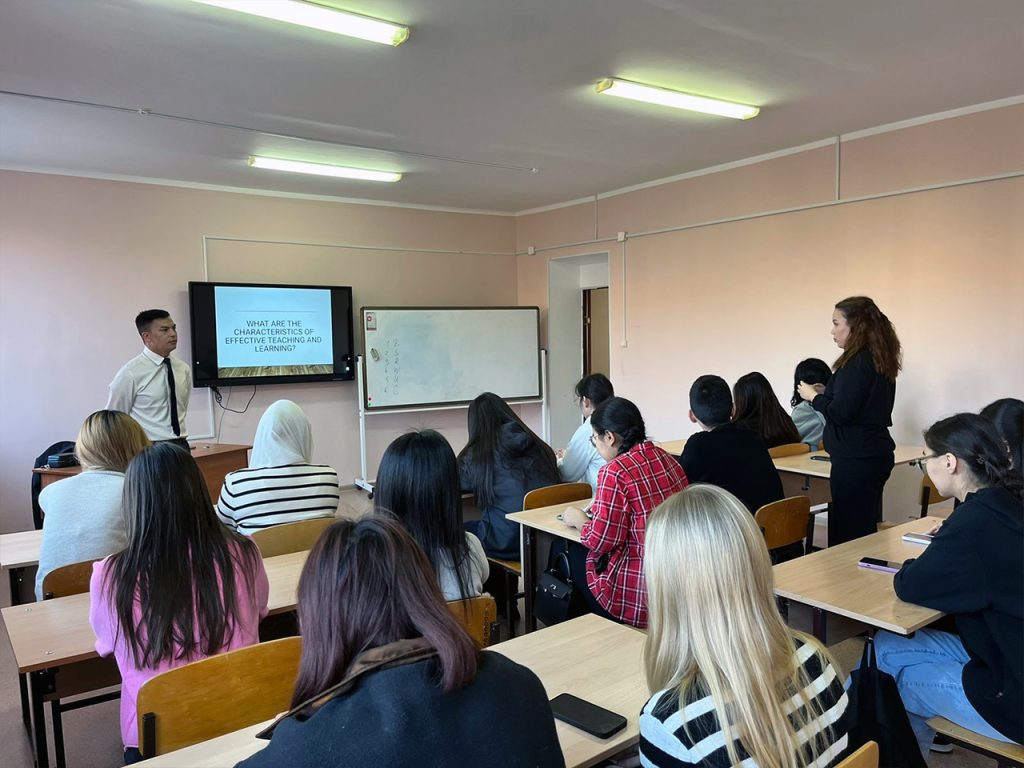 On November 4, 2024, Mirkhat Zhanbolatovich Akhtarov, Master of Pedagogical Sciences, Senior Lecturer, gave a guest lecture for the students of the Department of Foreign Languages and Translation Studies on “Effective Teaching and Learning: Key Features of the Updated English Language Programme”.