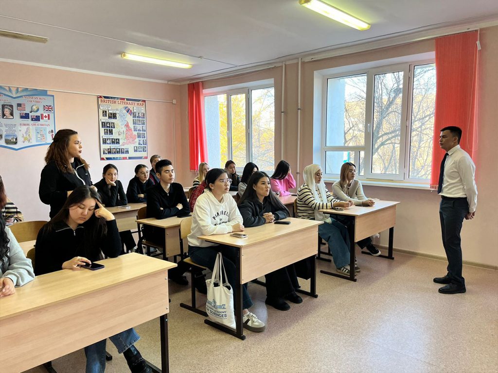 On November 4, 2024, Master of Pedagogy, senior lecturer, Akhtarov Mirkhat Zhanbolatuly gave a guest lecture for the students of the Department of Foreign Languages and Translation Studies on “Effective Teaching and Learning: Key Features of the Updated English Language Programme”.