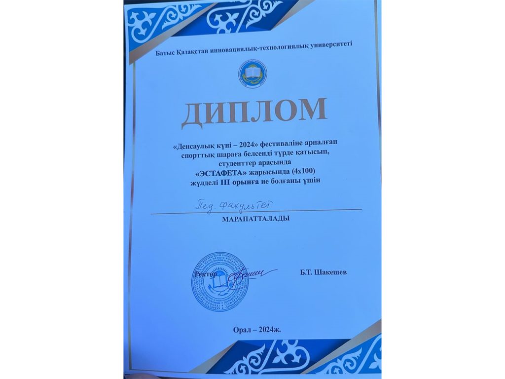 On September 25, 2024, Health Day was held at the Peter Atoyan Stadium for WKITU university. Annual Health Day has become a tradition at our university. It is held so that our students, advisors, parents can understand how much health means in their lives. The event began with the opening speech of the vice-rector for educational work of WKITU Abekeshev Ayanbek Imanbaevich. The Department of Physical Culture and IT organized various competitions, such as middle and long distance running, tug of war, lifting weights, etc. Students actively participated in competitions. Students of PD-111 group from the Department of Foreign Languages and Translation studies won the 1st and the 3rd places in relay race.