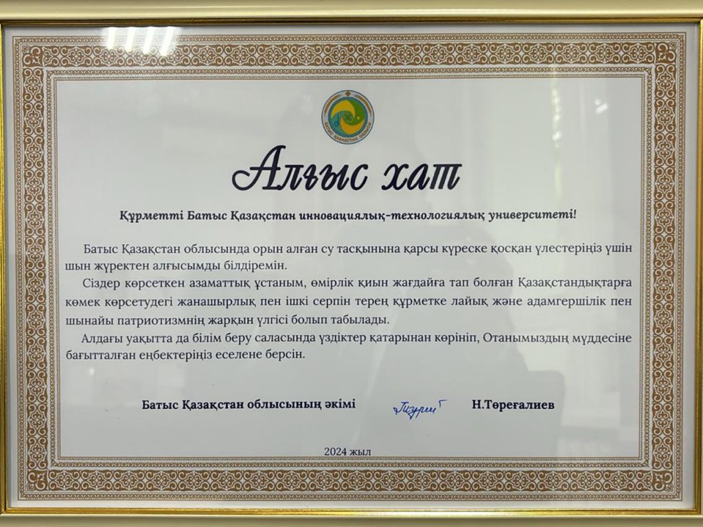 Among the 10 awarded volunteers, 4 are graduates of the West Kazakhstan Innovative and Technological University of different years: Baibatyrov Yerbolat – 4-time world champion in sambo, Iskali Daniyar – cultural worker, Janaliev Elgun Ahmed oglu – head of the Volunteer Center of the Assembly of the People of Kazakhstan of the West Kazakhstan region.
