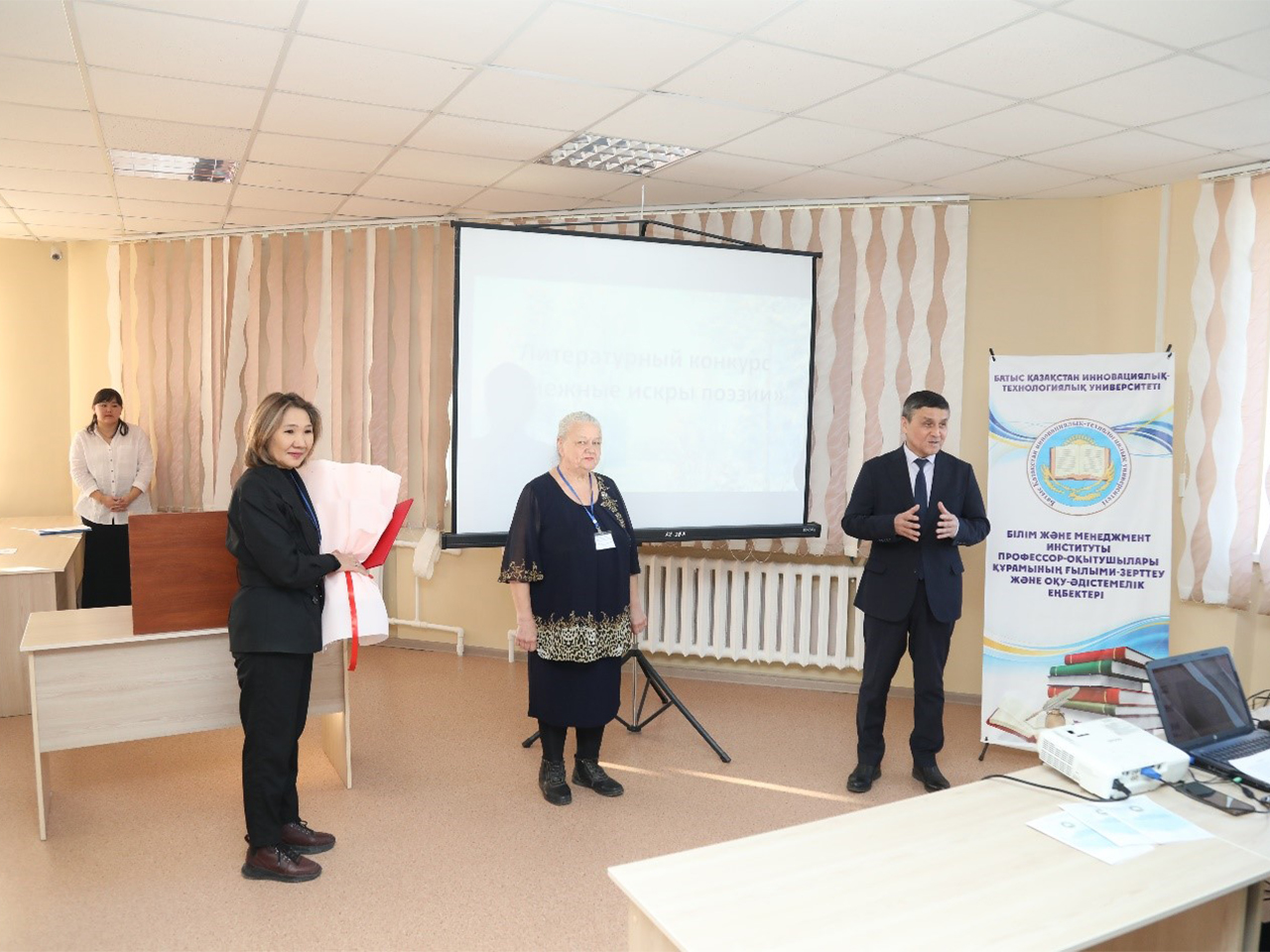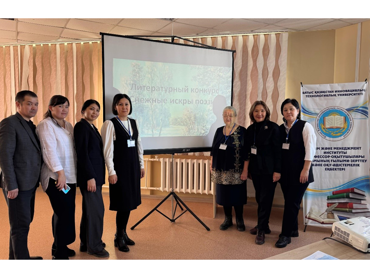 On February 20, 2025, the literary competition “Snow Sparks of Poetry” was held at the Department of Foreign Languages and Translation Studies. Participants of the competition are school teams: secondary schools No. 10, 43, 36, 18, 47. Director of the Institute of Education and Management c.h.s., Professor A.S. Tasmagambetov made a welcoming speech.