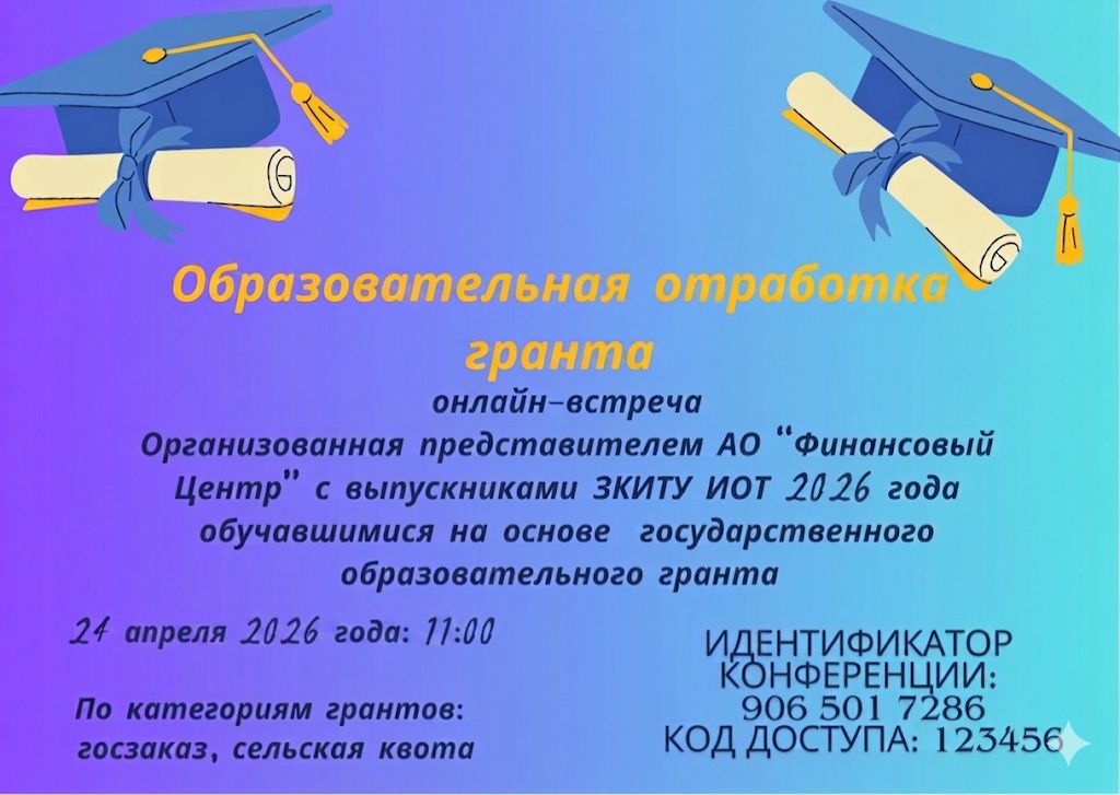 April 24, 2026, WKITU hosted an information and explanatory event on the mandatory development of a state educational grant by young specialists in accordance with the Law of the Republic of Kazakhstan «On Education». More than 98% of students and undergraduates studying on the basis of a state educational grant participated in the discussion.