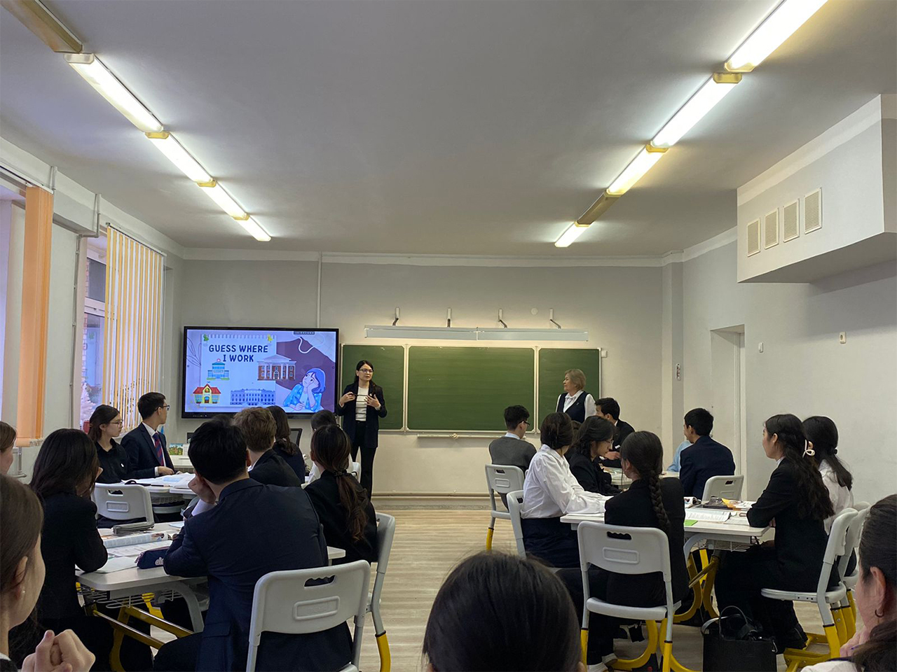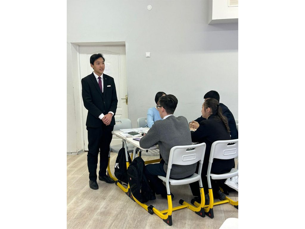 The students were grouped as follows: those with phobias in Group 1, psychologists in Group 2, psychotherapists in Group 3, and parents in Group 4. Collaborating within these groups, students successfully identified problems and explored potential solutions. Additionally, during the session, Nurzharkyn Aibolatovna shared her experiences with English teaching methods and demonstrated the app, Blooket.com.