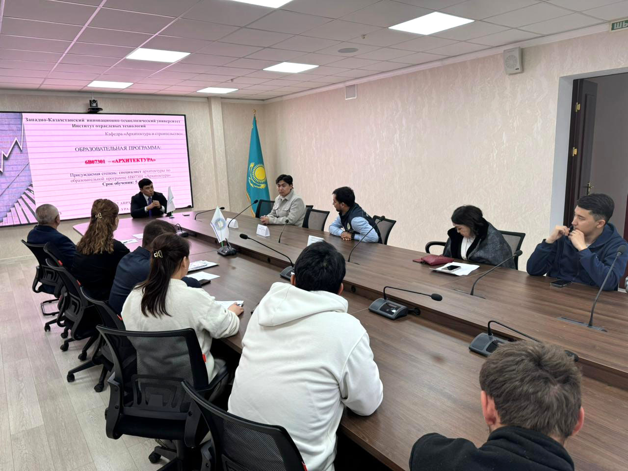 On April 24, 2026, a meeting of the Academic Committee was held at the Department of Architecture and Construction. The following stakeholders participated in the meeting: Chief Specialist of “CAPITAL STROI” LLP, Tlekkabyl A.A.; Director of “Topography” LLP, Gaysin R.E.; Chief Specialist of the West Kazakhstan Region State Architectural and Construction Control Department, Sapin R.U.; as well as the faculty members of the department and students of the educational programs “Construction,” “Architecture,” and “Land Management and Cadastre.”