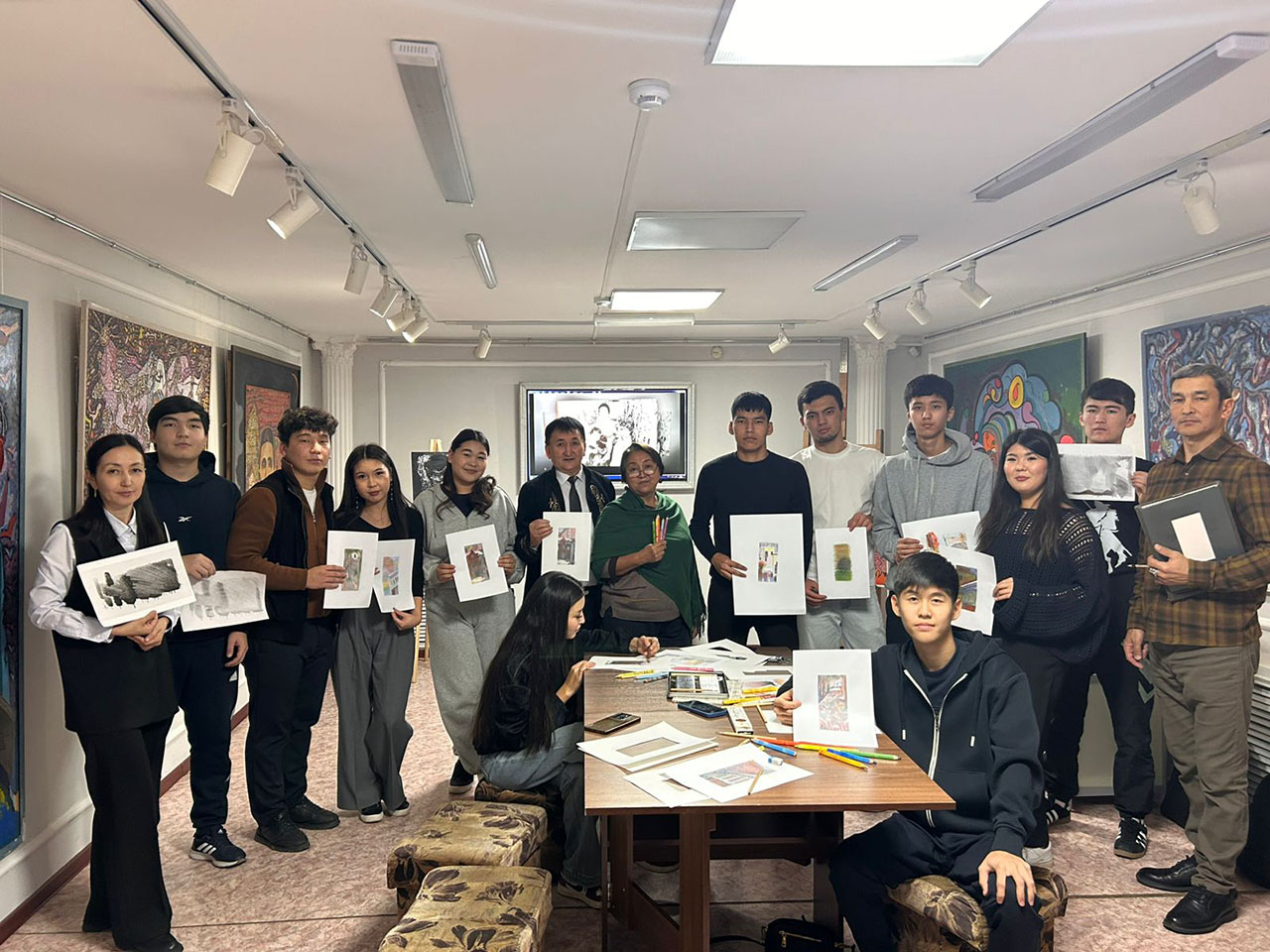 On 16.10.25, students of the Department of Architecture and Construction of the Arh17 O group, together with senior lecturer Kenzhegalieva B.A., were invited to the S. Gumarov Museum for a master class by a member of the Union of Artists of Kazakhstan Bekzhan Zhumabayev on the topic : “The possibilities of simple and watercolor pencils when performing open-air works.”