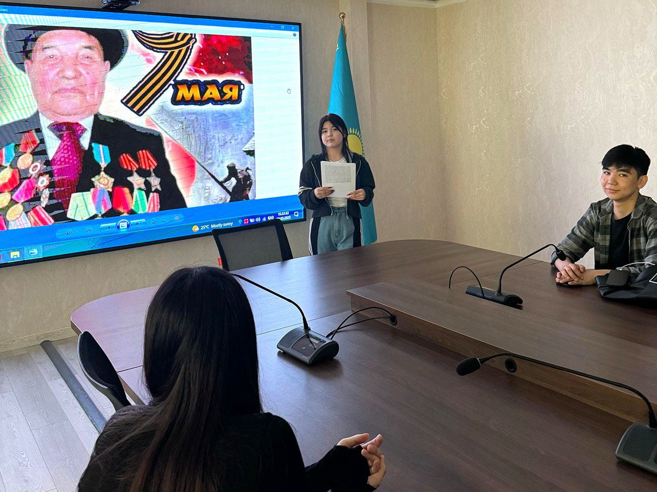 On May 8, 2025, an open educational lesson was held at the Department of Architecture and Construction among students of the educational programs 6B07301 – Architecture, 6B07303 – Land Management and Cadastre, grandparents of students who participated in the Great Patriotic War. The educational hour is aimed at remembering the heroic past through personal family stories. The students shared their memories of their grandparents who participated in the Great Patriotic War. Aruzhan Orazbekova shared her personal family story about Tulebai Knyazov’s grandfather, who participated in the Great Patriotic War. Tulebai Knyazov spent 15 days at the Pasha station in the Leningrad region, where he learned how to shoot a machine gun. Aliya Moldagulova, who was awarded the title Hero of the Soviet Union in the Kobdinsky district of Aktobe region, attended the 15-day seminar.