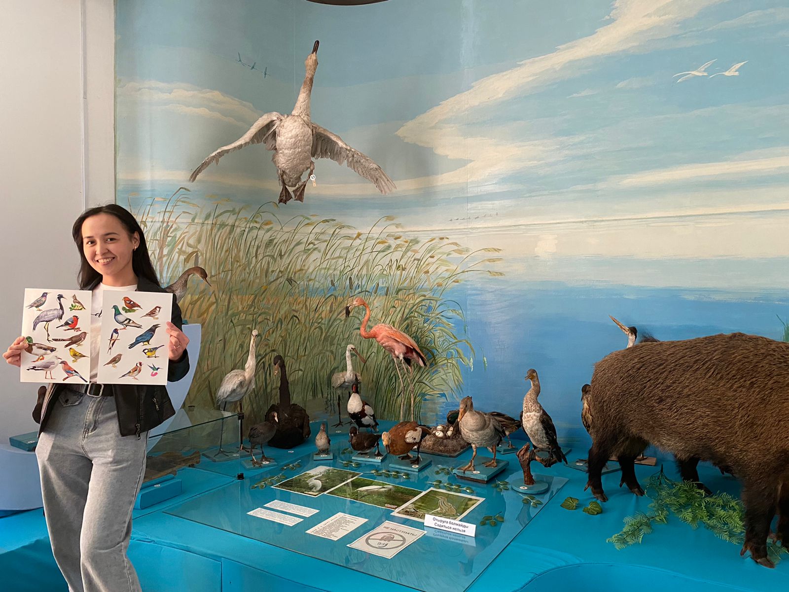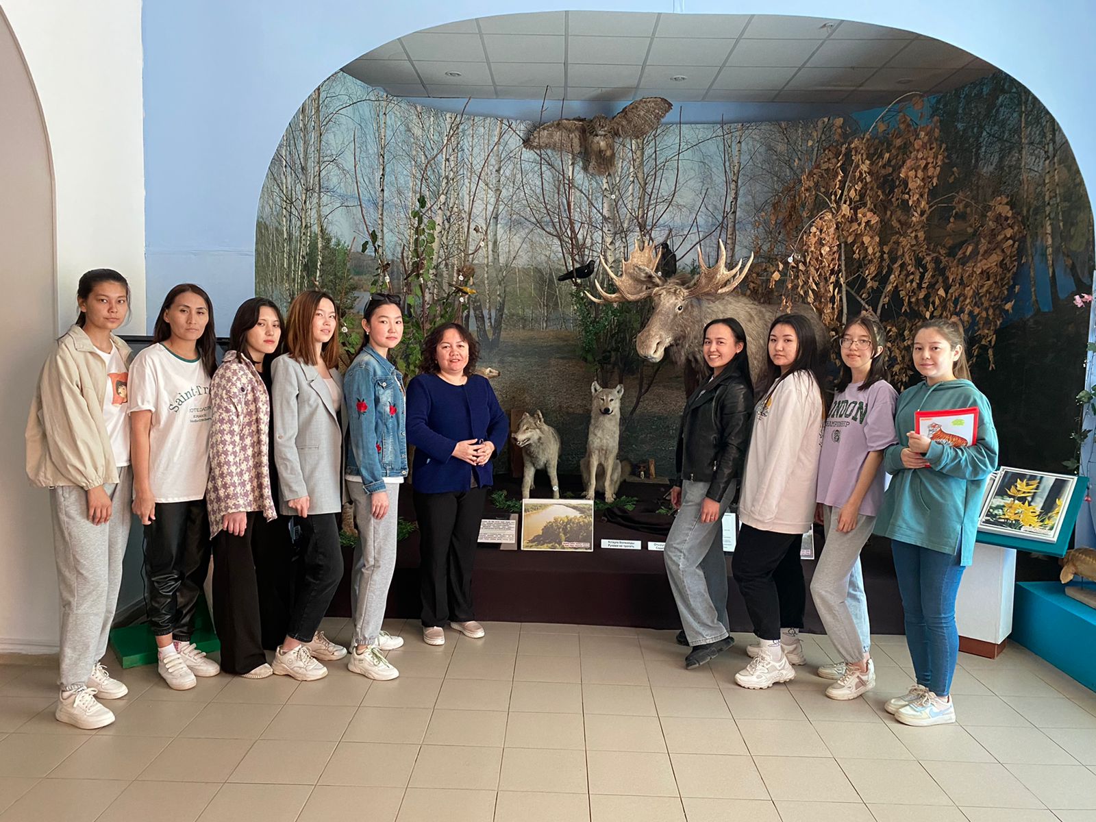 Associate Professor of the Department of Natural Sciences Roza Maratovna Bakesova with students of the 1st year of the educational program pedagogy and methods of primary education, in the lesson of the basics of natural science, conducted an excursion to the Museum of Nature and Ecology, where she introduced animals and birds living in the West Kazakhstan region. The students saw the exhibits of animals and birds in the booklets they created, learned to treat historical monuments with care, to highlight the main thing from the information they heard.