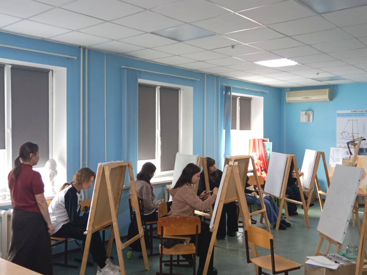 On February 28, 2025, at the Department of Architecture and Construction, senior lecturer Kenzhina Zh.S. conducted an open practical lesson in the ARCH-12 group on the discipline “Painting” on the theme “Still life in watercolor in warm colors.”