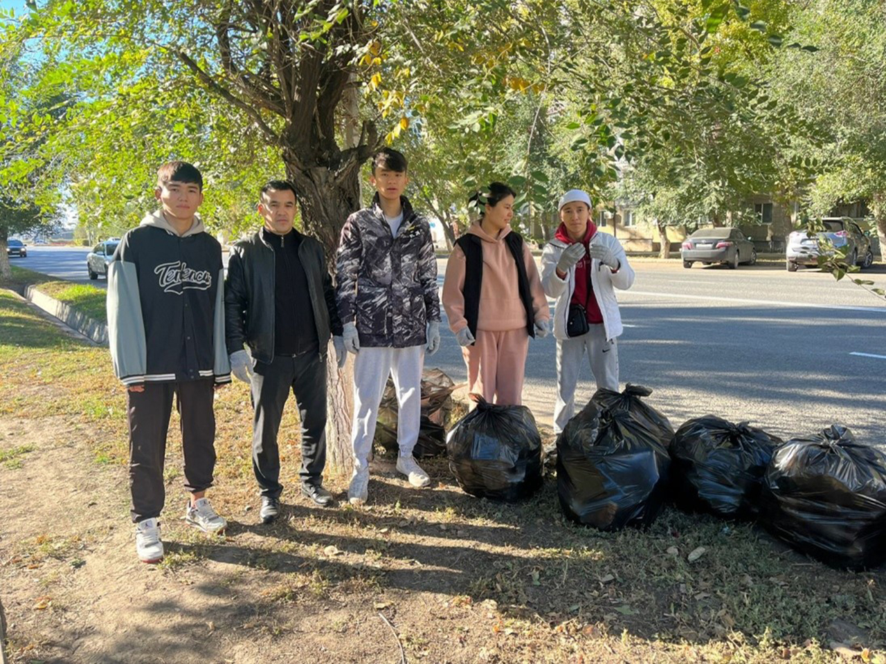 Students cleared a span along Yesenzhanova Street (from Omega Bridge to the intersection with Sholokhov Street).