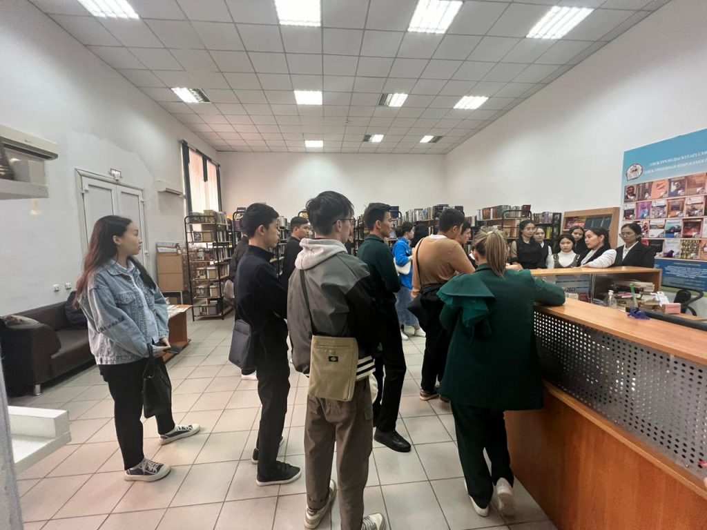 On September 14, 2023, students of the 1st year of the Institute of Branch Technologies of educational programs 6B07102 – Electric Power Engineering and 6B07105 – Automation and Control under the guidance of advisors, senior teachers of the Department of Energy, Automation and Computer Engineering N.G.Buranova and A.B. Kairanbayeva visited the Regional Universal Scientific Library named after J.Moldagaliev.