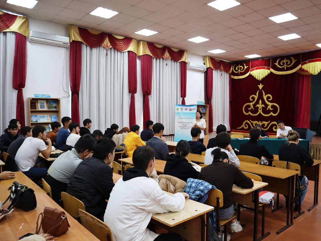 The 1st year students took part in the training seminar, asked questions to specialists-psychologists. Representatives of the Youth Policy of the NGO “Batys-Kamkor” summed up the results and urged young people to avoid bad habits and work together.