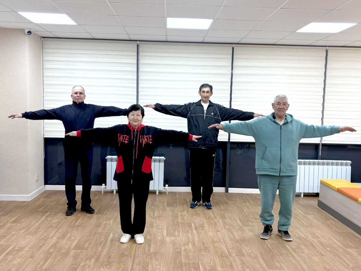 The session was conducted by Senior Lecturer M.M. Utarova. During the meeting, participants performed a set of health-improving exercises aimed at enhancing overall well-being, developing joint mobility, strengthening muscle tone, and maintaining an active lifestyle. Special attention was paid to the correct technique of movements and following recommendations regarding physical activity.