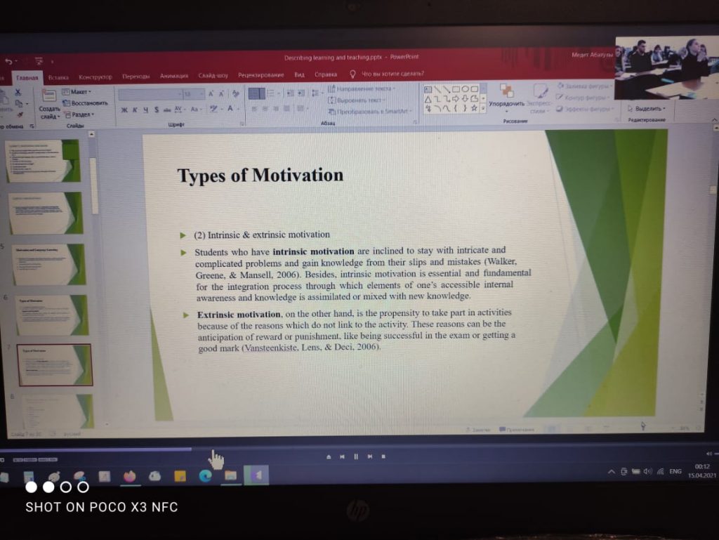 Матжанова Г.Ж., к.фил.н., докторы, шетел тілдері және аударма ісі кафедрасының доценті, Оренбург мемлекеттік педагогикалық университетінің студенттеріне “EFL Methodology”тақырыбында әдістеме бойынша бірқатар онлайн дәрістер өткізеді.