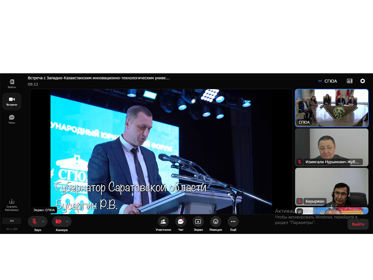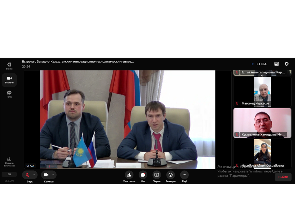 2025 жылғы 20 ақпанда Саратов мемлекеттік заң академиясы мен Батыс Қазақстан инновациялық-технологиялық университетінің өкілдері онлайн кездесу өткізілді, кездесуде ғылым және білім саласындағы ынтымақтастық туралы шартқа қол қою мәселелерін талқылады.