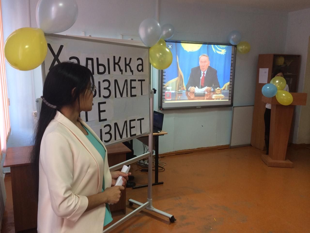 2018 жылдың 30 қарашасында«Халыққа қызмет – елге қызмет» тақырыбында Батыс Қазақстан инновациялық-технологиялық университетінің, инженерлік-технологиялық факультетінің, экология және биотехнология кафедрасының аға оқытушысы, техника және технология ғылымдарының магистрі Хамиева Нурия Сансызбаевна кафедра студенттеріне ашық тәрбие сағатын өткізіп, Қазақстан халқының тұңғыш президенті Нұрсұлтан Әбішұлы Назарбаевтың өмір жолы мен ел басқару жолындағы ұшқыр саясаты мен озық ойларының біліктілігінің арқасында жеткен жетістігімен шыққан шыңы жайлы мағұлматтарымен таныстырды.