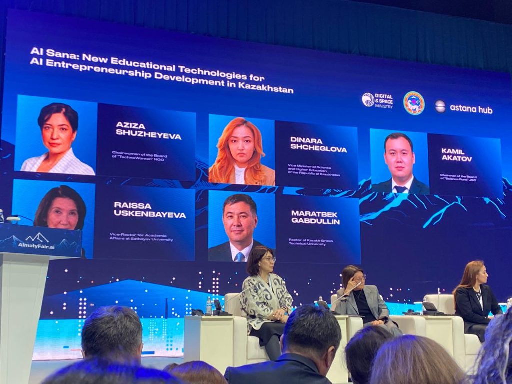 ҚР Ғылым және жоғары білім Вице-министрі Динара Щеглова «AI-Sana» инновациялық бағдарламасын ұсынды, сондай-ақ Министрліктің елімізде академиялық кластер құрудағы және жасанды интеллектті білім беруге интеграциялаудағы жетістіктерін және бағдарламадағы “зәкірлік” жоғары оқу орындарының рөлін көрсетті. Ол AISana бағдарламасының нөлдік кезеңі 650 мың студентті қамтитынын және оларды АИ саласындағы базалық біліммен оқытатынын, бұл кезең басталып, ағымдағы жылдың мамыр айына дейін жалғасатынын атап өтті.