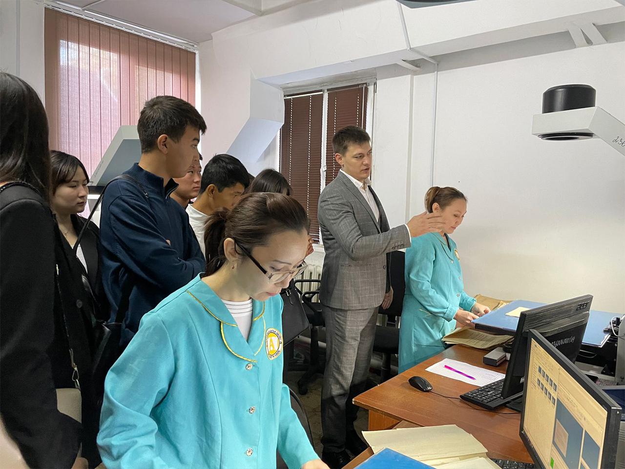 Шара барысында білім алушылар архив қызметкерлерінің жұмысымен танысты және архив қоймасына экскурсия жасады. Сонымен қатар, білім алушылар архив қызметкерлері дайындаған көрмені тамашалады.
