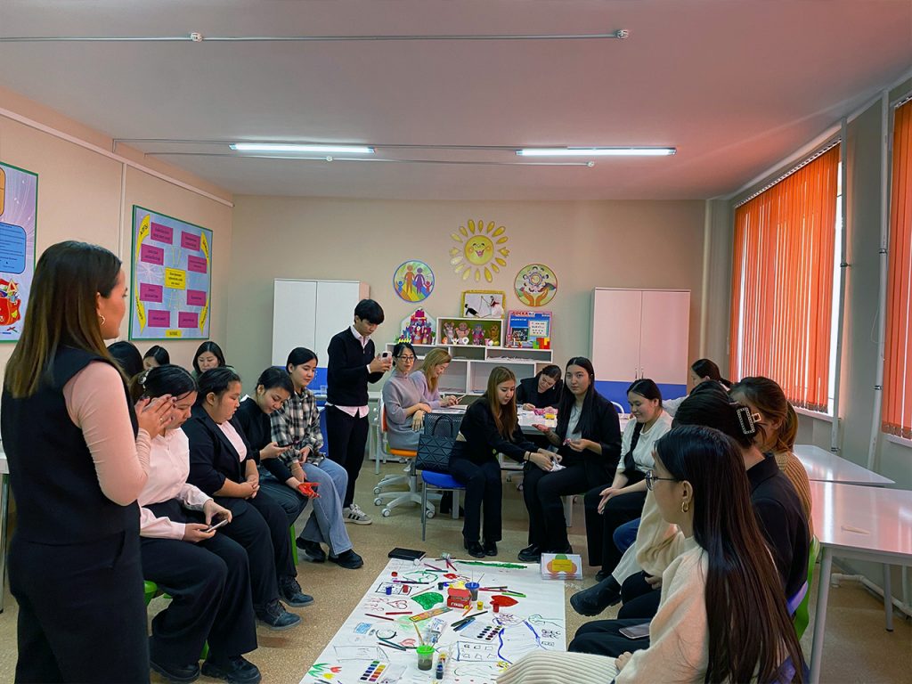 2023 жылдың 6 желтоқсанында «Педагогика және психология» кафедрасының білім алушы студенттеріне арт терапиялық әдістердің тұлғаның психикалық жағдайының үйлесімділігін дамытудағы орнын ұғындыру және шығармашылық тәжірбие жүзінде қолдануға дағдыландыру мақсатында кафедра оқытушылары Гинаятова А.А., Сатыбылдиева А.М., Қабди Ж.С. «Арт терапия- шығармашылық терапиясы» тақырыбында семинар-тренинг өткізді. Ұйымдастыру бөлімі студенттердің бір-бірімен жақын танысу мақсатында «Додекаэр» әдісі арқылы танысу тренингімен басталды. Одан әрі студенттерге арт терапия түрлері, маңызы жайында ақпарат беріліп, оны іс-тәжірибеде қолданумен жалғасын тапты. Семинар-тренингтің тәжірибелік бөлімі «Топтық-шығармашылық» деп аталды. Бұл кезеңнің мақсаты студенттердің ұжымшылдығын, топтық жағдайда тиімді жұмыстануларын қалыптастыру. Шараның соңында музыка-терапия элементі ретінде ән айтылды. Жалпы семинар-тренингтің рефликсия бөліменде «Pаdlet» онлайн тақтасында студенттерден кері байланыс алынды. Кері баланыс нәтижесінде семинар-тренинг өз мақсатына жетіп, жоғары деңгейде өткізілді деп бағалаған.