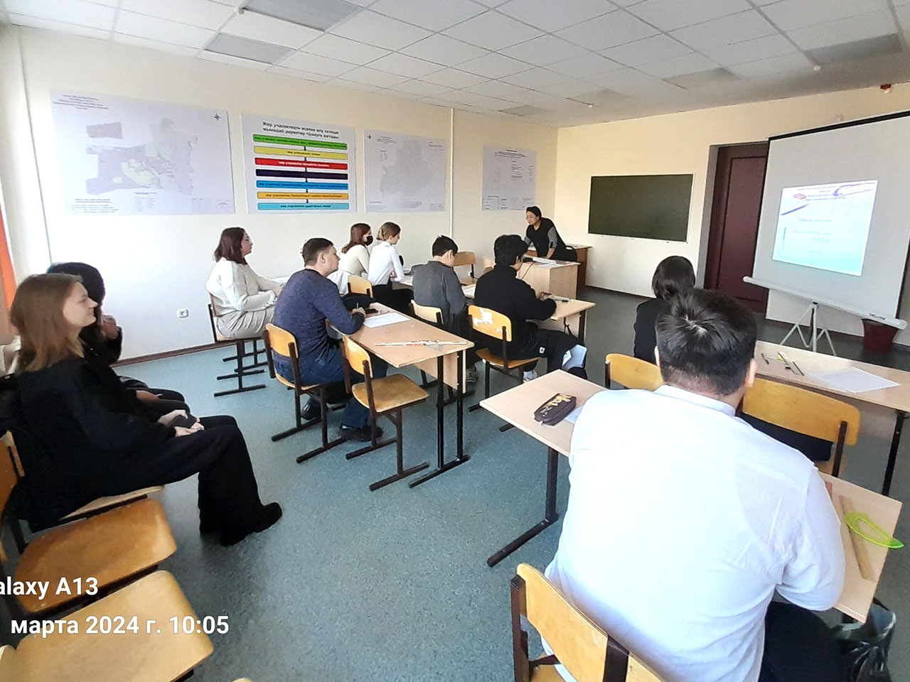 01.03.24 ж. “Сәулет және құрылыс” кафедрасының аға оқытушысы Б.А. Кенжеғалиева Сәулет 12 тобында “Аксонометриялық проекциялар” тақырыбында “Сәулет – құрылыс сызбасы” пәні бойынша ашық практикалық сабақ өткізді.”Сабақтың мақсаты конструкторлық құжаттама ретінде аксонометриялық проекциялар туралы білімді кеңейту, ГОСТ сәйкес аксонометриялық проекциялармен сызбаларды орындау ережелері мен реттілігін зерттеу, логикалық ойлау мен кеңістіктік қиялды дамыту болды.