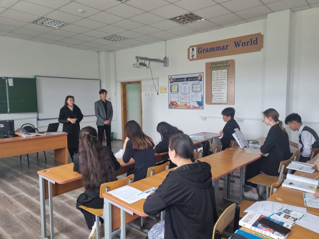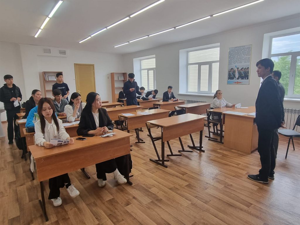 Түлектер ақпаратты қызығушылықпен қабылдап, жарнама парақтарымен танысып, өздерін қызықтырған сұрақтарын қойды.