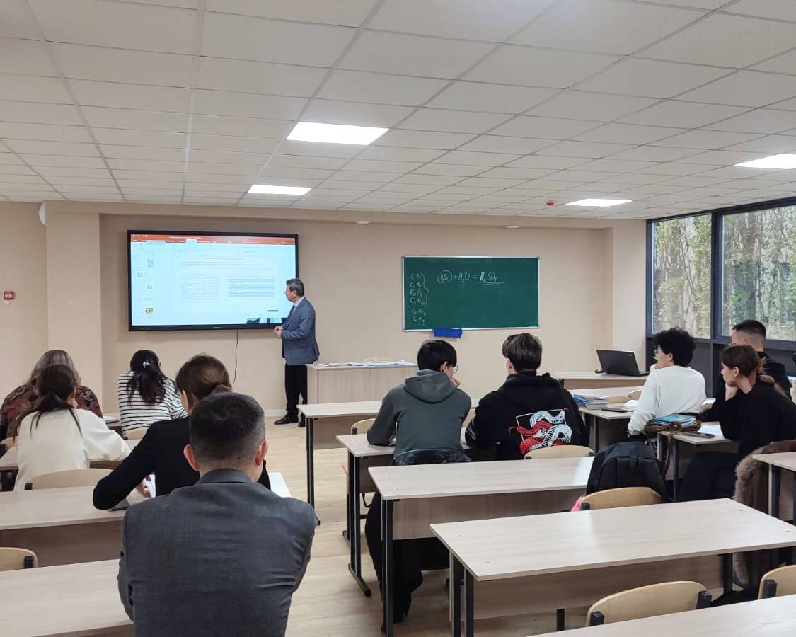2025 жылғы 4 қараша күні Мұнай-газ инженериясы кафедрасының қауымдастырылған профессоры Ихсанов Қ.А. «Ұңғыма өнімдерін жинау және дайындау» пәні бойынша «Ілеспе мұнай газын тасымалдауға дайындау» тақырыбында дәріс-сұхбат форматында НД-42 О тобының студенттеріне ашық сабақ өткізді.