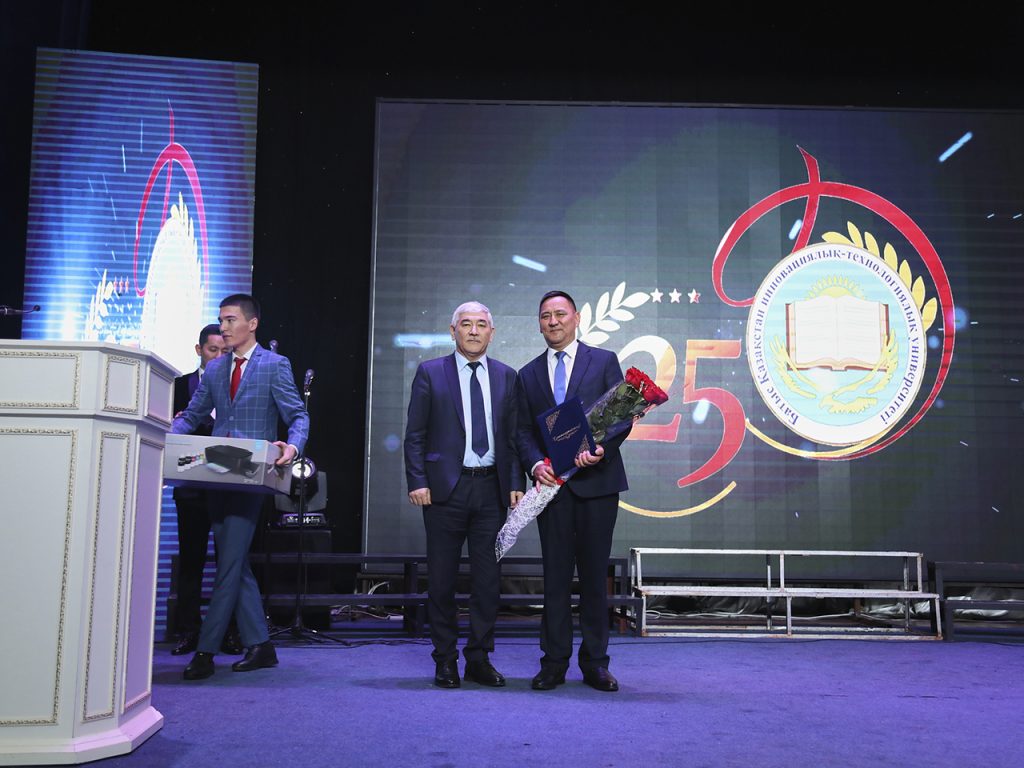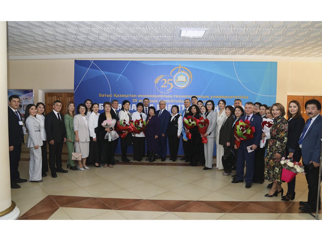 Мерекелік кеште еліміздің жоғары білімі мен ғылымына қосқан айрықша үлесі үшін университеттің бір топ профессор-оқытушылары ҚР Ғылым және жоғары білім министрілігінің «Еңбек ардагері», «Ғылымды дамытуға сіңірген еңбегі үшін» төсбелгілерімен және құрмет грамоталарымен марапатталды. Университет ректоры, техника ғылымдарының кандидаты Бекболат Шакешев бір топ әріптесімізге ҚР жоғары оқу орындары қауымдастығының төсбелгілері мен алғыс хаттарын табыстады. БҚИТУ құрылтайшысы, ауыл шаруашылығы ғылымдарының докторы, профессор. Қазақстан Ұлттық жаратылыстану ғылымдары академиясының академигі, Жәңгір хан атындағы Батыс Қазақстан аграрлық-техникалық университетінің құрметті ректоры Қазыбай Бозымов құттықтау сөз алып, жеке жоғары оқу орнының тарихы ел өмірінің маңызды кезеңдерімен тығыз байланысты екенін атап өтті. Университеттің даму жолында тынымсыз тер төккен профессор-оқытушылар мен қызметкерлерді мерейтоймен құттықтады.