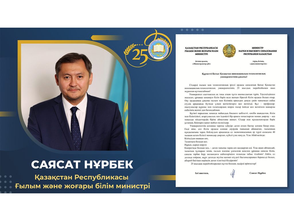 Университет мерейтойына орай әр тараптан құттықтаулар келуде. Қазақстан Республикасы Ғылым және жоғары білім министрі Саясат Нұрбек, Жоғары оқу орындарының ректорлары Кеңесінің төрағасы Ерлан Сыдықов, Қазақстан Республикасы жоғары оқу орындары қауымдастығының президенті Рахман Алшанов білім ордасының ұжымына жүрекжарды лебізін бейнеқұттықтау арқылы жеткізді.
