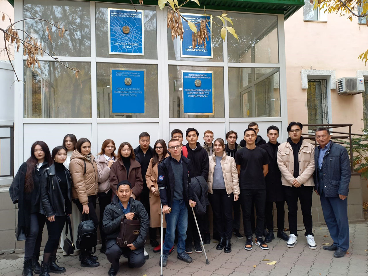 БҚИТУ ИГФ құқық кафедрасының аға оқытушылары А.А. Абдрашит, Г. Б. Аралбековтың бастамасымен 2022 жылғы 14 қазанда сағат 10-да Батыс Қазақстан облысы Орал қаласының мамандандырылған тергеу сотының судьясы Исмаилова Раушан Тоқтасынқызымен 6В04202-Құқықтану, 6В04203- Тасымалдауды, қозғалысты және көлікті пайдалануды құқықтық реттеу білім беру бағдарламаларының білім алушыларымен кездесу өткізілді.