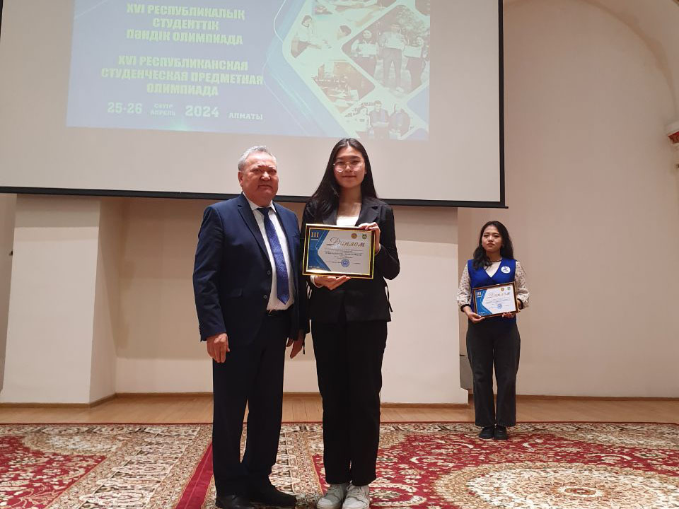 6В09101 Ветеринарлық медицина ББ 4 курс білім алушысы Кушербай Фаризаны жеңісімен және жүлделі 3 орын алуымен құттықтаймыз (жетекшісі – «Ветеринария және техносфералық қауіпсіздік» кафедрасының аға оқытушысы, РФ б.ғ.к., Жубантаева А.Н.). Білім алушы Иманалиева Ақнұр олимпиадаға қатысқаны үшін алғыс хатпен марапатталды.