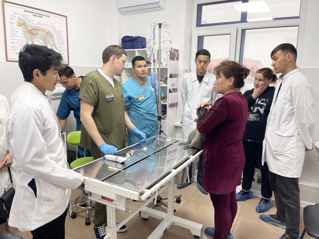 Кафедра профессоры, в.ғ.д. Байтлесов Е.У. «Ветеринариялық акушерлік және гинекология», «Гинекологиялық аурулар» пәндері бойынша 6В09101 «Ветеринариялық медицина» білім беру бағдарламасының 4,5 курс студенттері және 7М09101/7М09102 «Ветеринариялық медицина» білім беру бағдарламасының 2 курс магистранттары үшін «ZOODOCTOR» ветеринариялық клиникасы базасында басшы Страмоусов Максим Анатольевичпен бірге практикалық тәжірибесі мол сабақ өткізді.