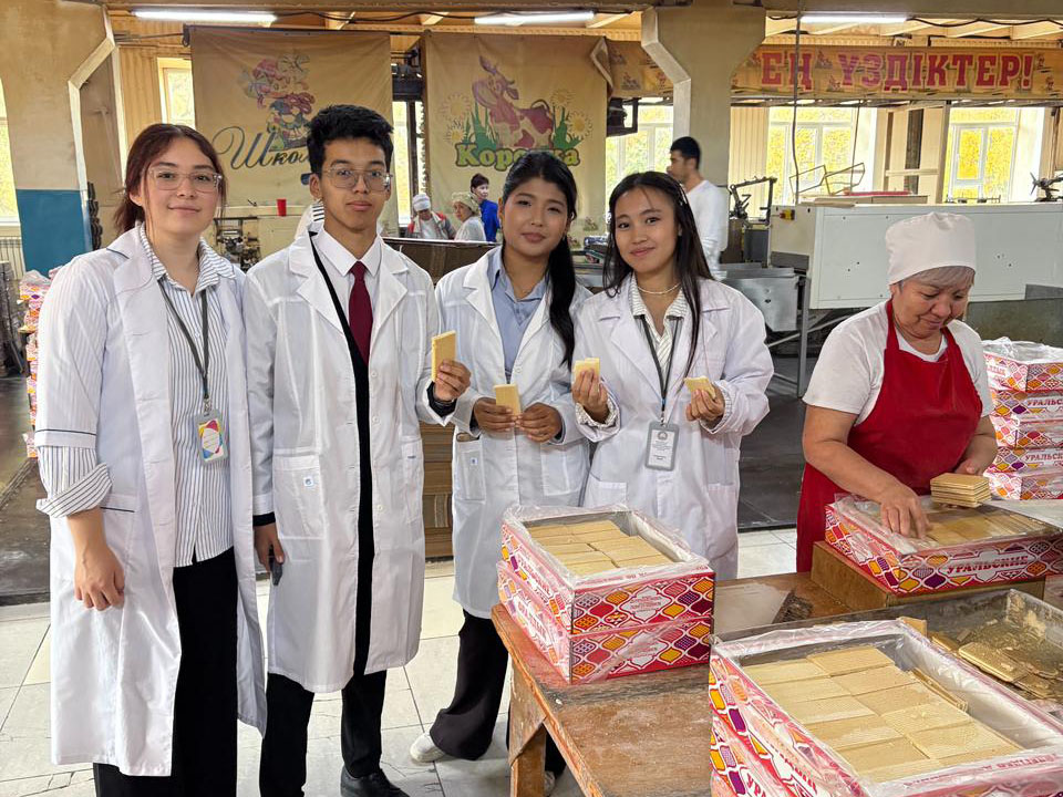 Зауыт мамандары өндірістік үдерістердің ерекшеліктері туралы кеңінен баяндап, өнім сапасын бақылау мен талаптардың сақталуына ерекше назар аударды. Сонымен қатар, студенттер санитарлық-гигиеналық нормалар мен экологиялық стандарттарға қатысты сұрақтар қойып, кәсіби білімдерін кеңейтуге мүмкіндік алды.