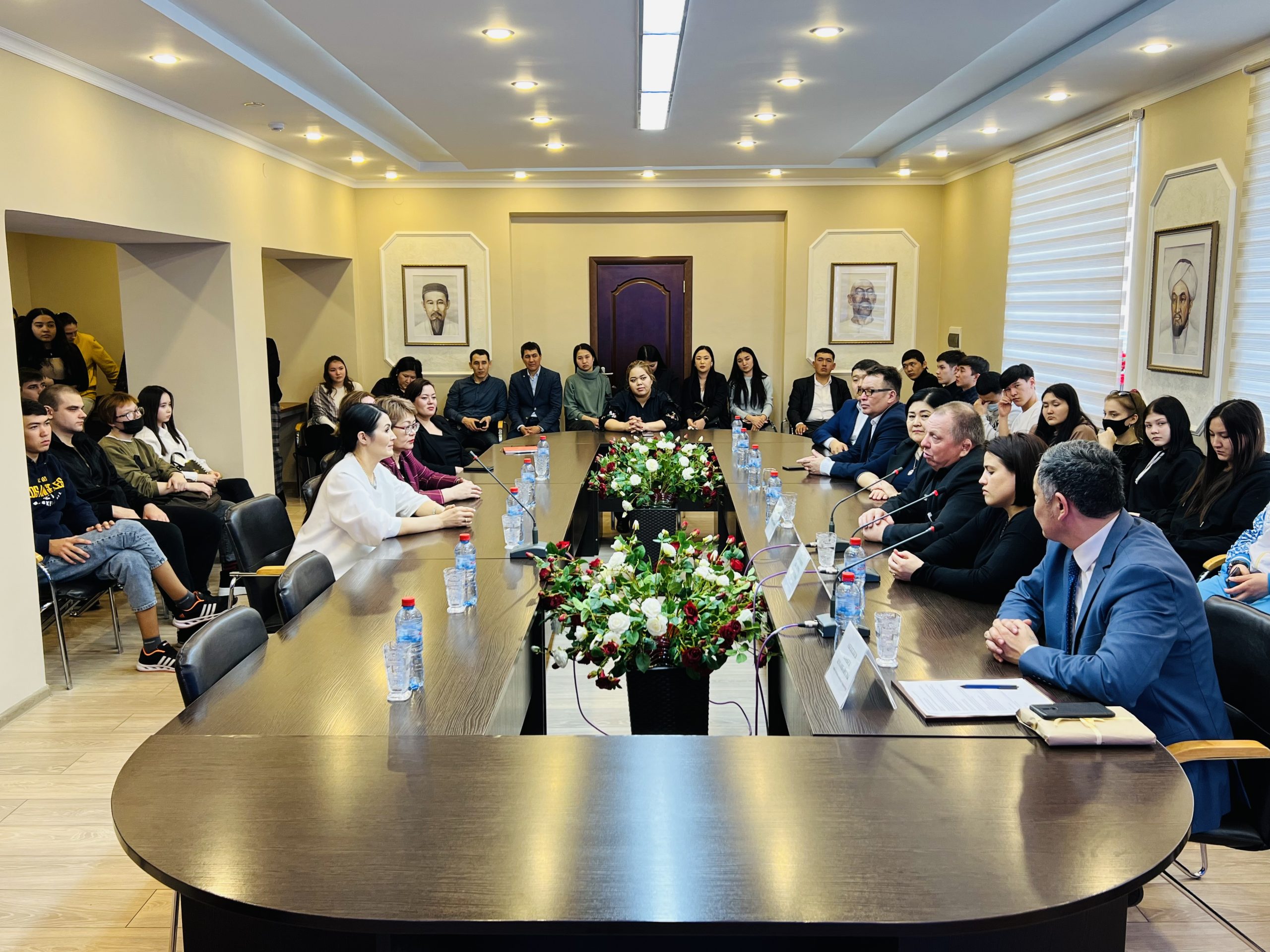 Кездесу барысында қонақ әр адам бойындағы елге, Отанға деген сүйіспеншілік отбасындағы тәрбиеден, ата-анаға құрметтен, бауырмалдықтан басталатындығын айтты. Белгілі спортшы студенттерге өмірде жетістікке жету үшін алға мақсат қойып, сол мақсат жолында табанды еңбек етудің жеңіске жету екендігін түсіндірді. Адамды адал еңбек биікке жетелейтінін кеңірек әңгімеледі.