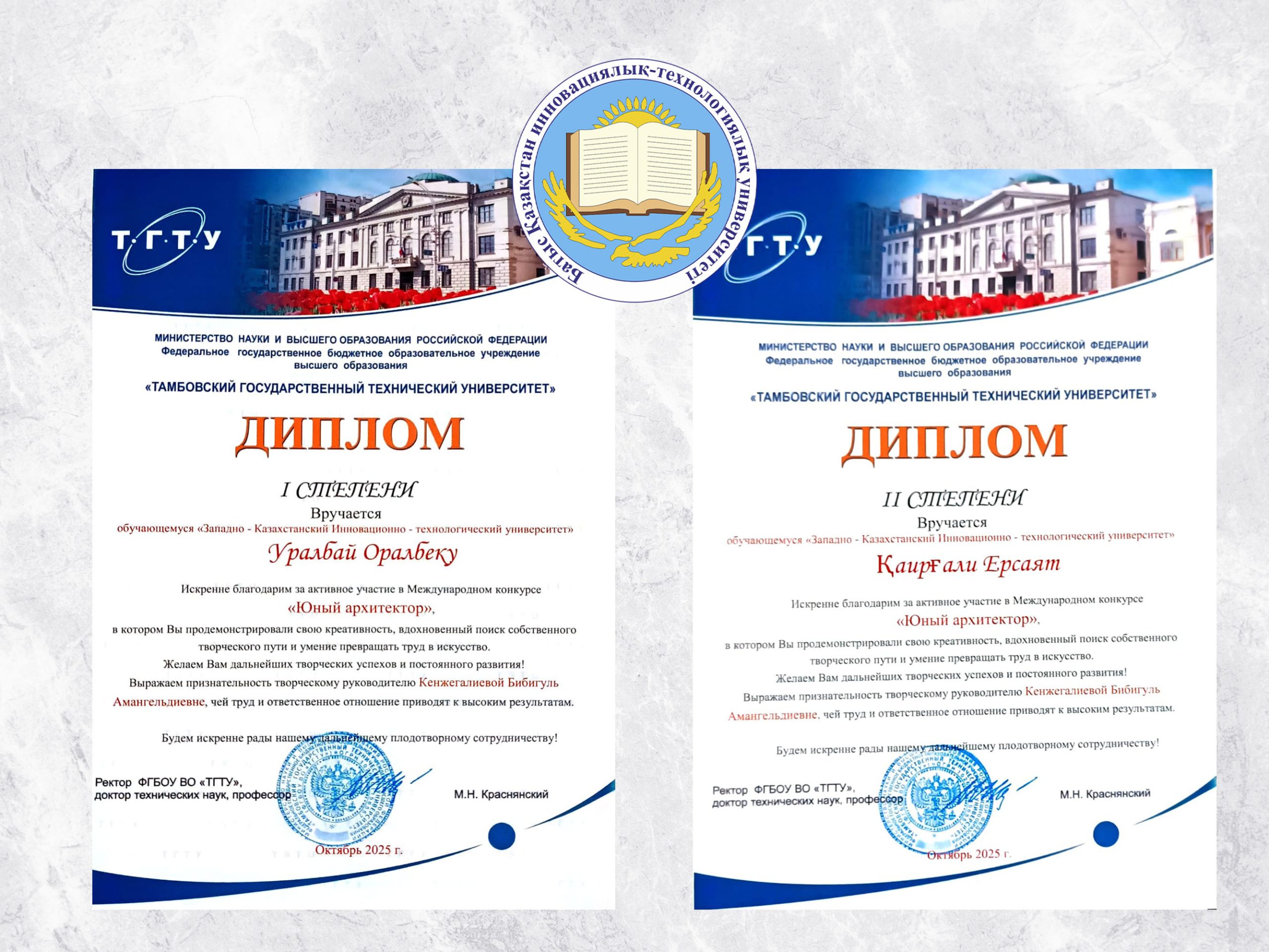 Сәулет өнері саласындағы жас таланттарды анықтау мақсатында Тамбов мемлекеттік техникалық университеті ағымдағы жылдың мамыр айында Отан қорғаушы жылына арналған “Жас сәулетші” халықаралық байқауын ұйымдастырды, оған “Сәулет және құрылыс” кафедрасының студенттері қатысты, жетекшісі – аға оқытушы Б. А. Кенжеғалиева .