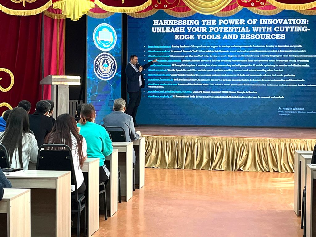 Омарбек Ташим өз кезегінде IT-дегі жобалық менеджмент туралы айтып, Astana Hub-тағы жұмыс тәжірибесімен бөлісіп, жас мамандарды дамыту үшін орта құрудың маңыздылығын атап өтті. Әрі қарай, IT Group Kazakhstan Бас директоры Михаил Михайлович Дудниченков өңірдегі өмірді жақсартуға бағытталған заманауи цифрлық білім беру платформалары мен жобаларын ұсынды.