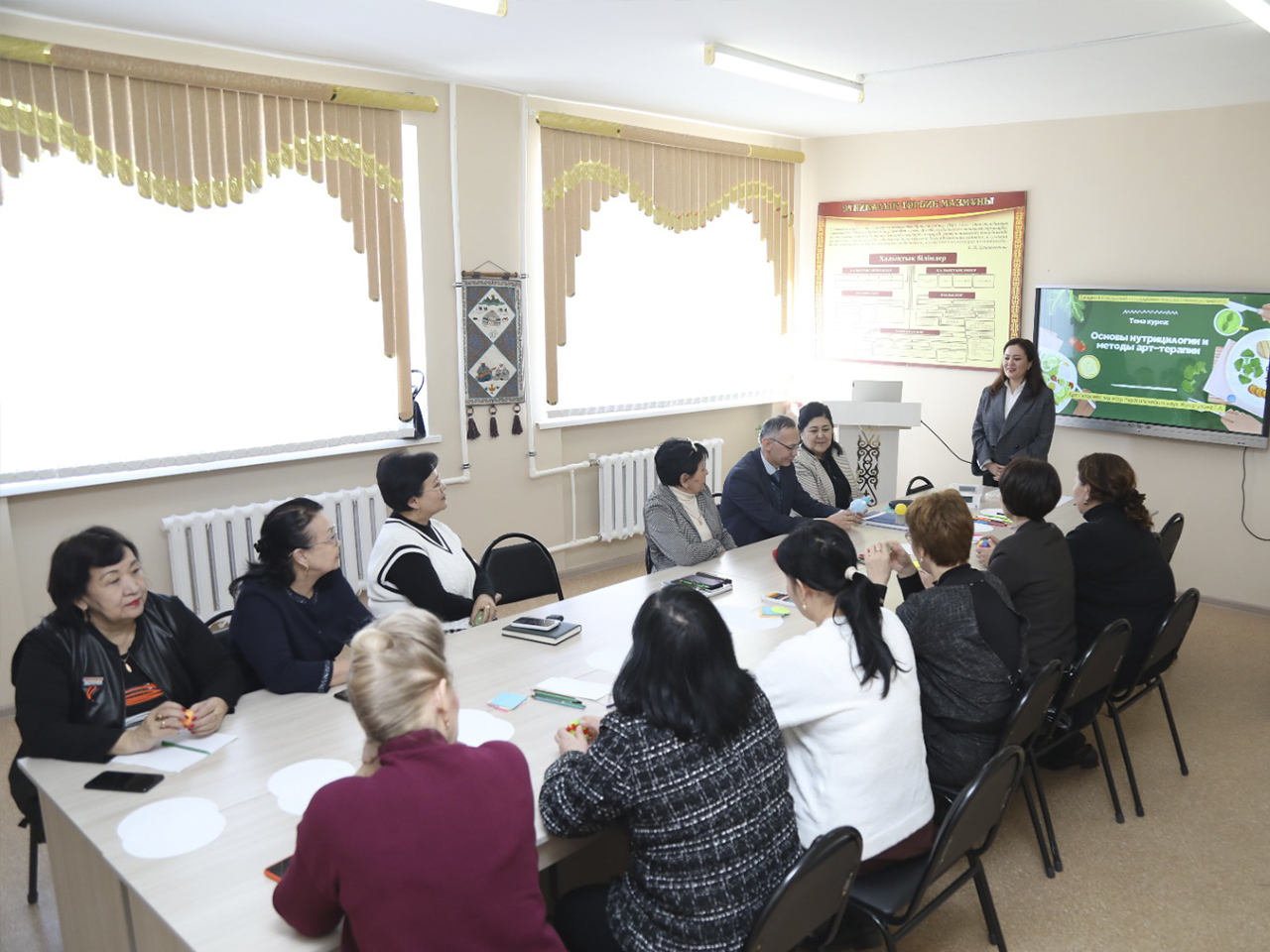 21.02.2024 күні Батыс Қазақстан инновациялық-технологиялық университетінде Қайта даярлау, біліктілікті арттыру және қосымша білім беру орталығының ұйымдастырумен “Күміс университетінің тыңдаушыларына арналған “Нутрициология негіздері және арт-терапия әдістері” курсының Нутрициологияның теориялық негіздері” тақырыбындағы бірінші сабағы өтті. Бұл – Күміс университеті аясында өткізіліп отырған алғашқы курстардың бірі. Аталған курсқа 60 жастан асқан тыңдаушылар қатысты. Сабақты педагогика ғылымдарының магистрі, аға оқытушы Жумагулова Г.А. өткізді. Курстың мақсаты арт-терапия әдістерін қолдана отырып, егде жастағы адамдарда дұрыс тамақтану дағдыларын қалыптастыру болып табылады. Алғашқы сабақта “нутрициология”, “дұрыс тамақтану”, “тамақтану тәртібі” ұғымдарын анықтау сияқты мәселелер қаралды. Сондай-ақ, тыңдаушылармен жұмыста “метафоралық шарлар”, кескіндеме терапиясынан жаттығулар, мандалотерапия сияқты арт-терапиялық әдіс-тәсілдер қолданылды. Топтық жұмыс барысында тыңдаушылар арасында сенімді қарым-қатынас орнап, олар өздерінің тағамға деген қалауы, дұрыс тамақтану мәселесіне деген көзқарасы туралы ойларын ашық айтты. Соңында рефлексия өткізілді, үлестірмелі парақшалар арқылы тыңдаушылар кері байланыс беріп, өткен тақырып бойынша пікірлерін айтып, алғыс білдірді. Курстың жалғасы бар. Қызығушылық танытқандарды курстың келесі сабақтарына шақырамыз.
