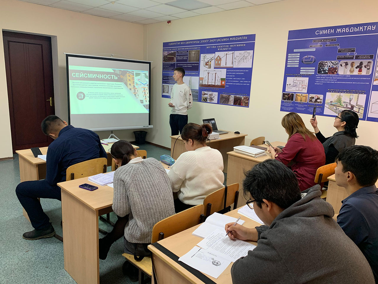 21.11.2023 ж. «Сәулет және құрылыс» кафедрасында аға оқытушы Б. Н. Аманова Арх-32о тобында «Ғимараттар мен құрылыстарды салу технологиясы» пәні бойынша «Биік ғимараттарды тұрғызу технологиясы» тақырыбында ашық практикалық сабақ өткізді.