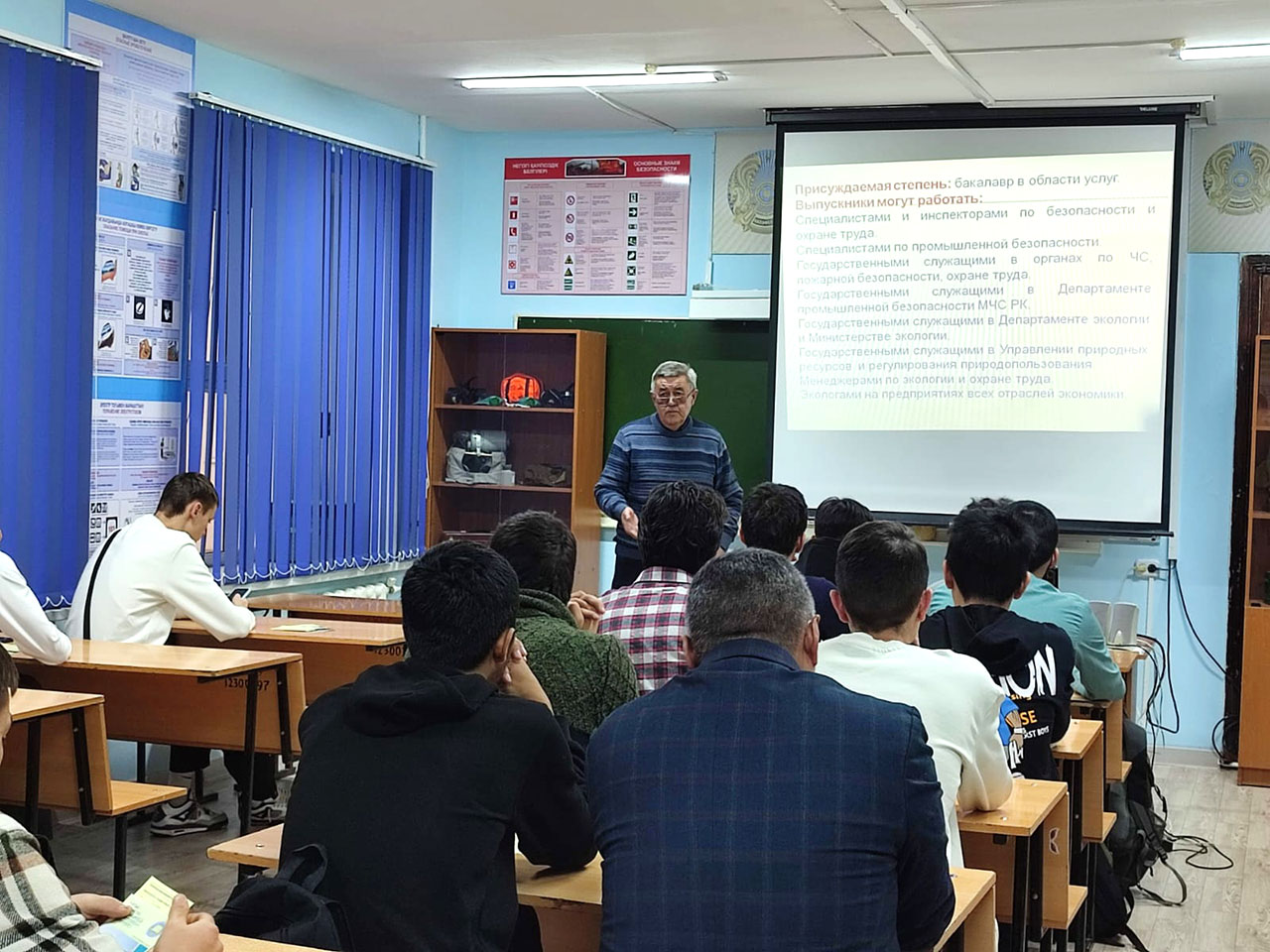 2022 жылдың қараша айының 22-23 күндері БҚИТУ-дың, ветеринария және техносфералық қауіпсіздік кафедрасының 6В11201 «Қоршаған ортаны қорғау және өмір тіршілігінің қауіпсіздігі» білім беру бағдарламасының профессорлық-оқытушылар құрамы Жоғары аграрлық техникалық колледжінің «Өрт қауіпсіздігі» мамандығының студенттерімен кәсіптік бағдар беру жұмыстары аясында кездесу өткізді.