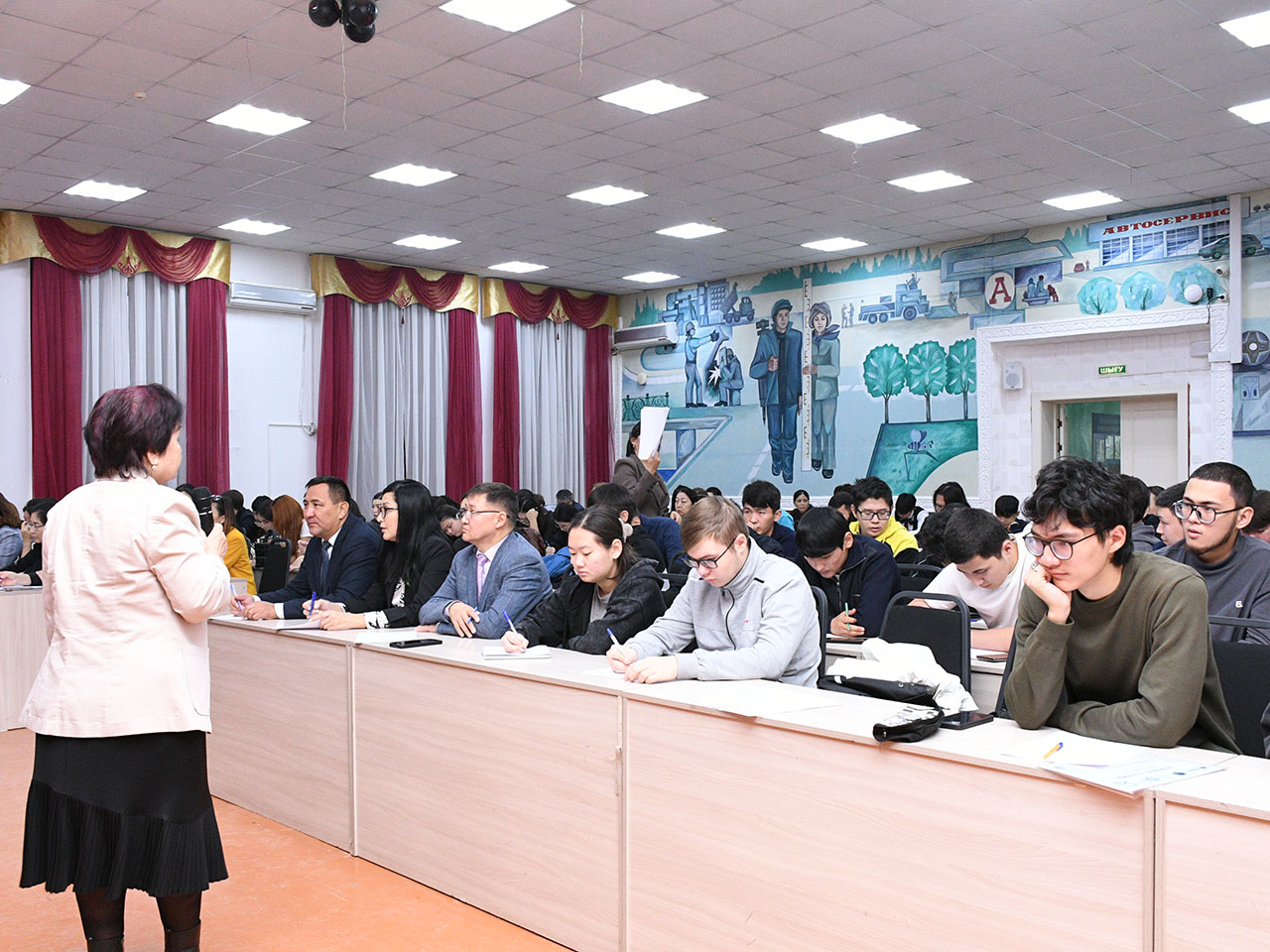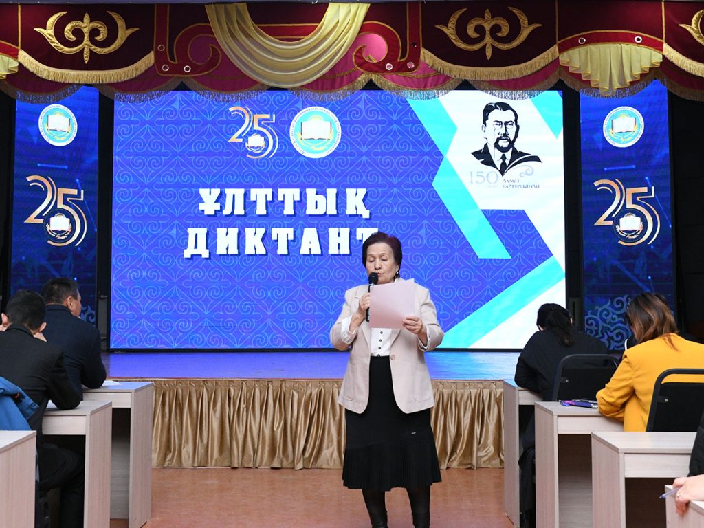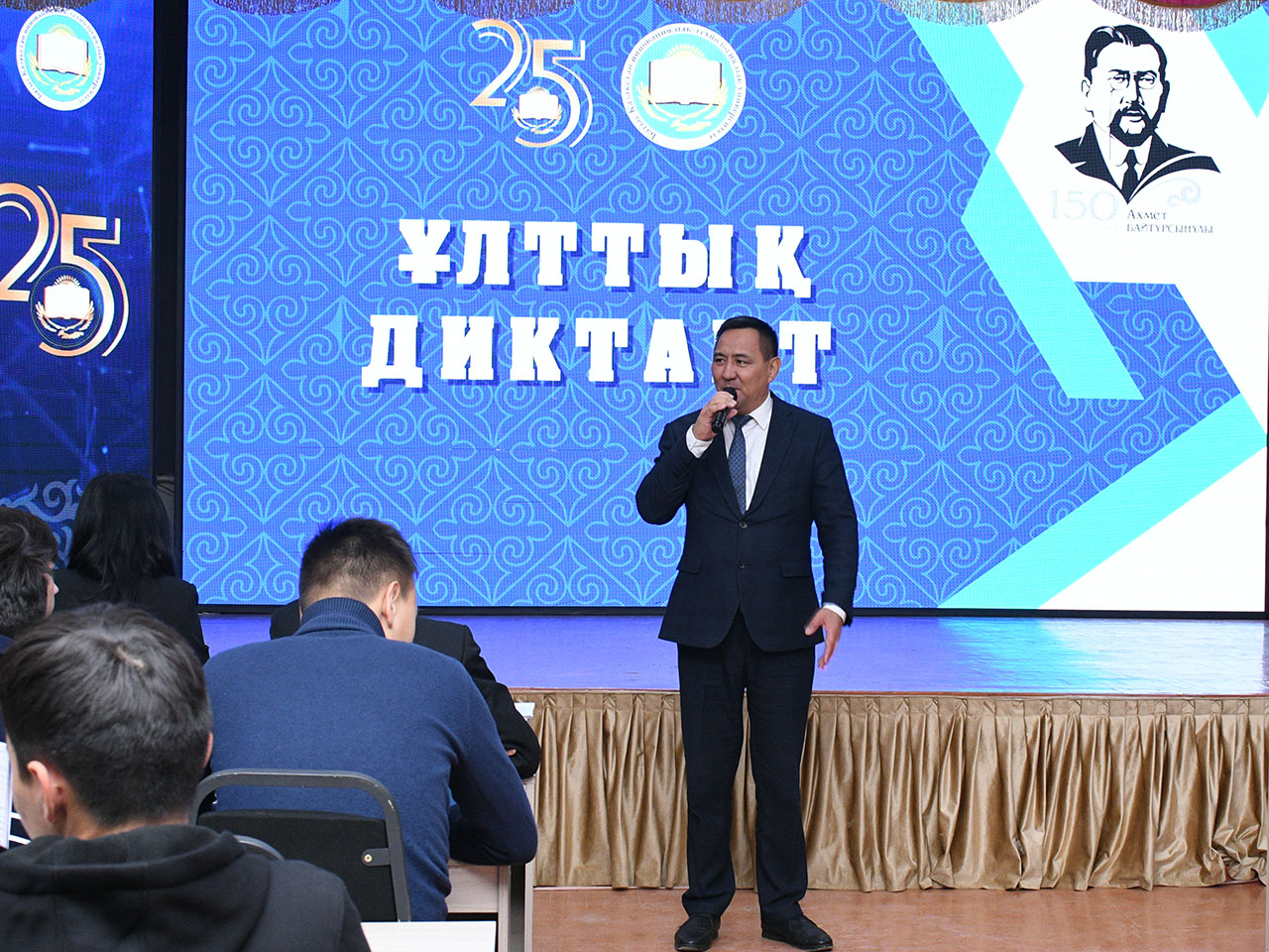 Диктант мәтініне Ахмет Байтұрсынұлының 1913 жылы «Қазақ» газетінде жарияланған «Оқу жайы» атты мақаласынан үзінді берілген. Диктантты Жалпы білім беру кафедрасының профессоры, филология ғылымдарының кандидаты Шканова Бақыт Әжіғұлқызы жүргізді.