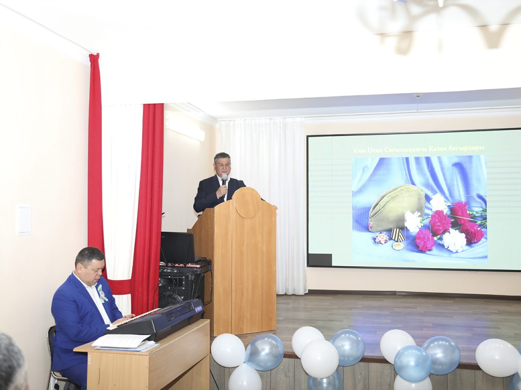 Концерт барысында БҚИТУ-нің тәрбие ісі жөніндегі проректоры Абекешев А.И. мерекемен құттықтап, тарих ғылымдарының кандидаты, профессор Курманалин С.Б. «Ұлы Отан Соғысындағы Қазақ батырлары» атты баяндама оқып берді. Концертте халық батырларының ерен ерлігіне арналған патриоттық әндер шырқалып, жыр шумақтары оқылды.