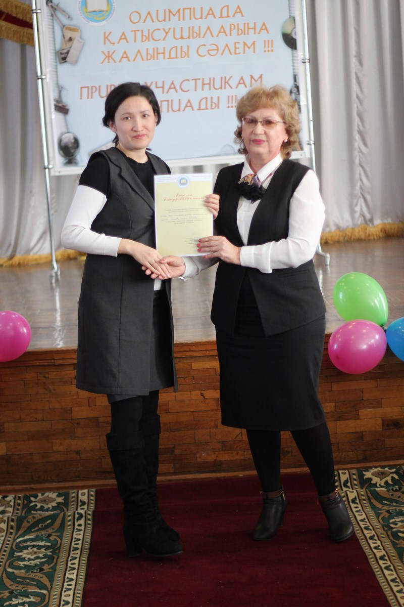 Қатысушы әр мектептің физика және математика пәндерінің мұғалімдері олимпиадаға оқушыларды дайындағандары үшін алғыс хаттармен марапатталды.